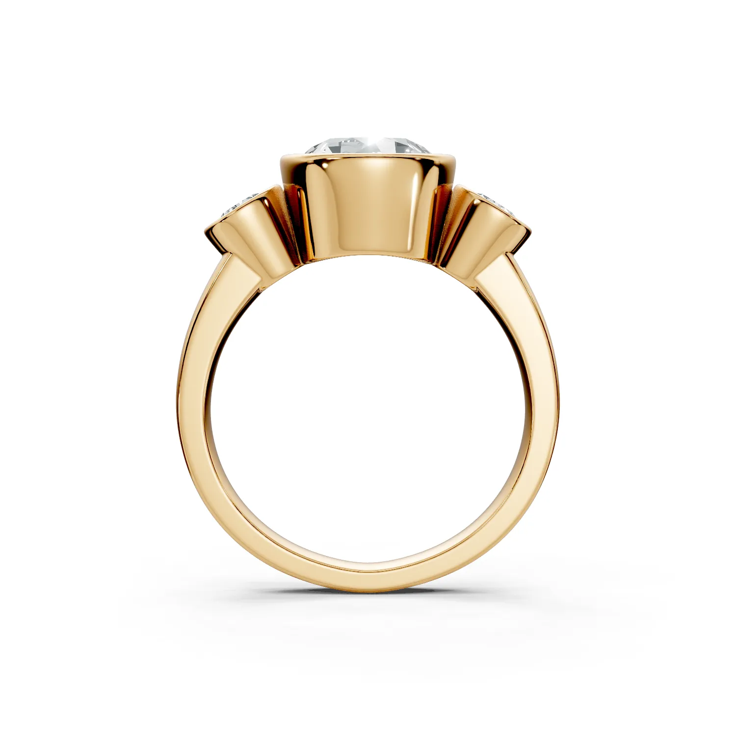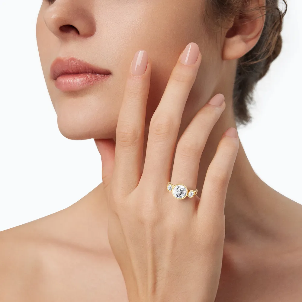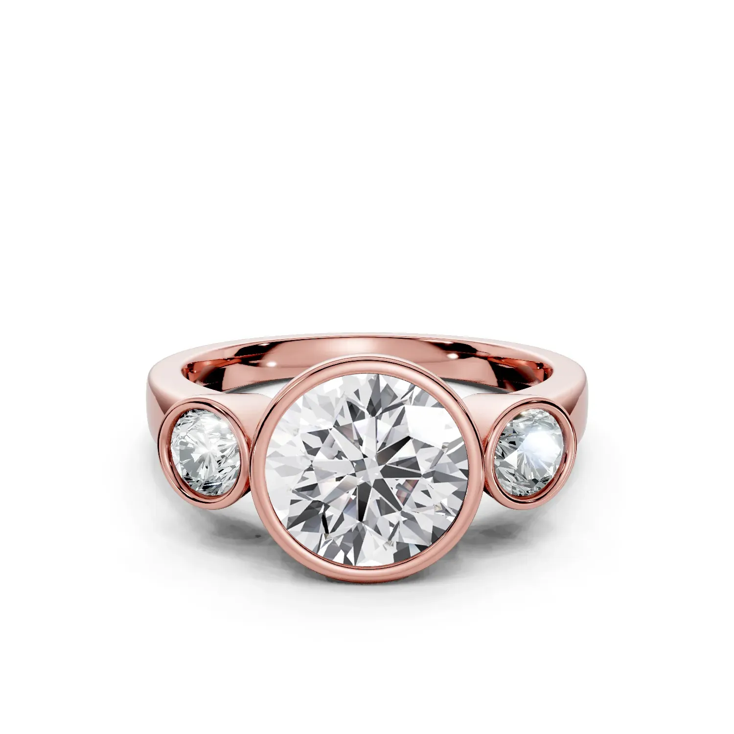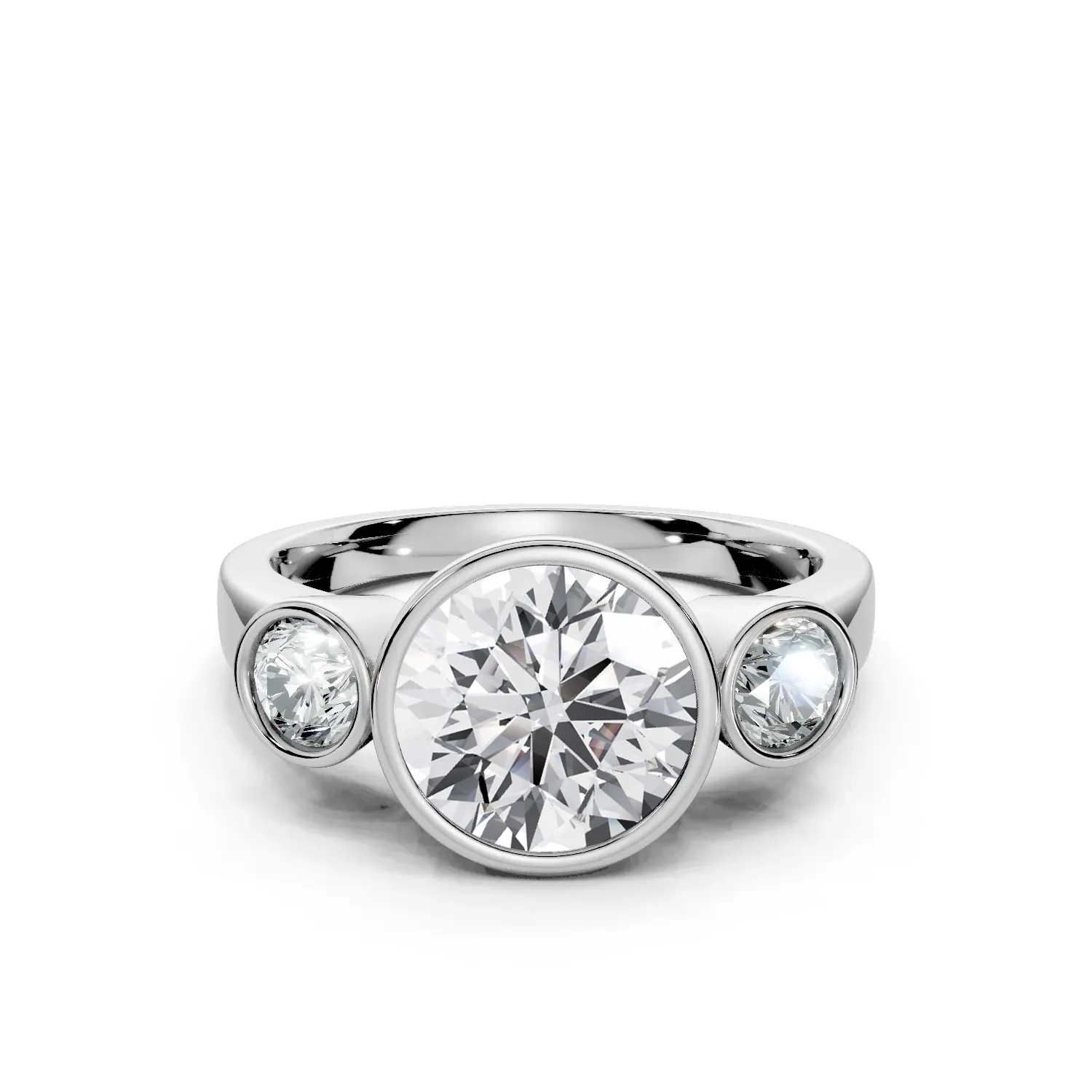 Modern Round Bezel Three-Stone with Straight Band Ring